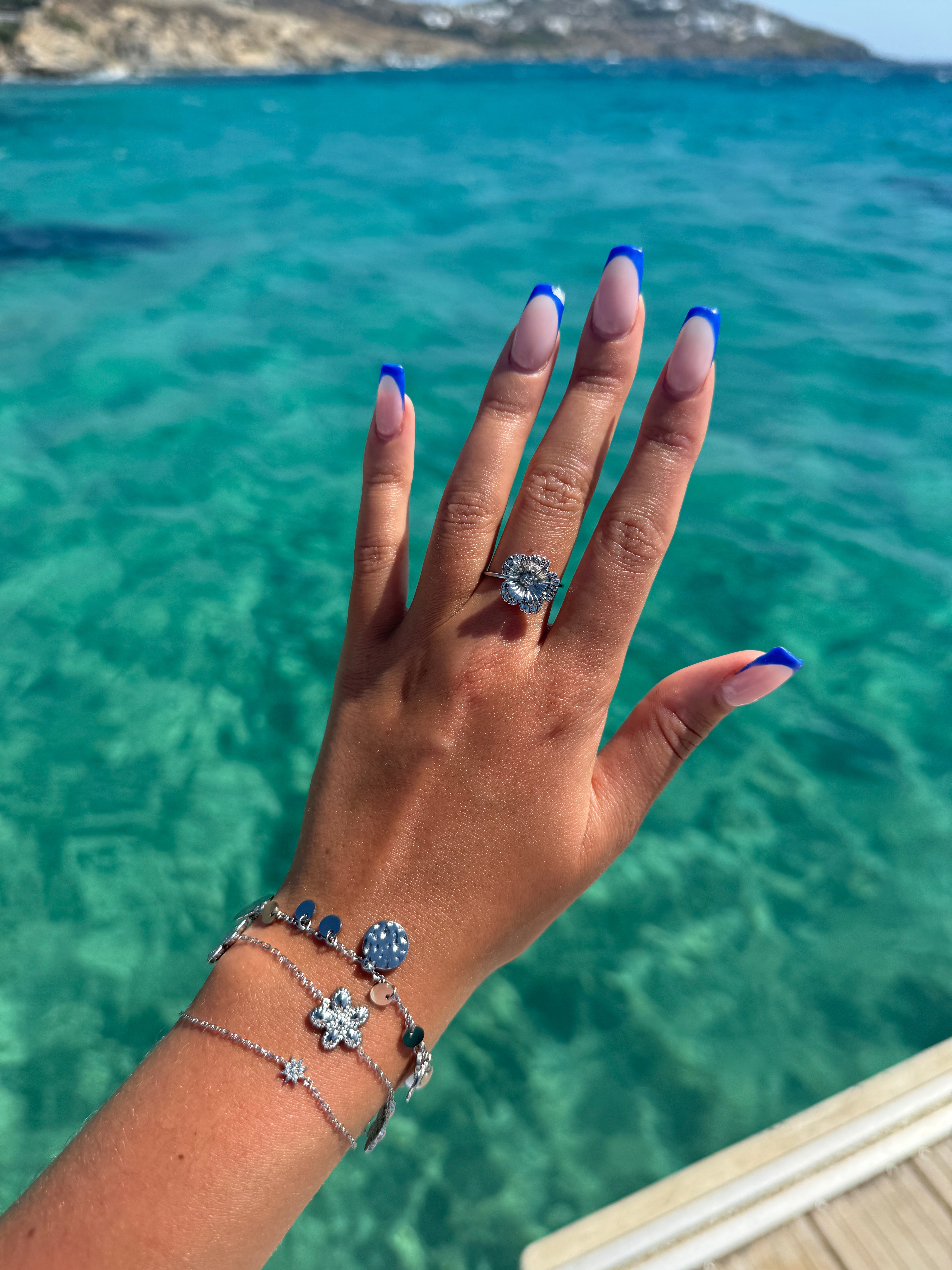 Découvrez notre collection Mykonos, et notre somptueuse bague NORIA. Inspiré par les magnifiques paysages de l'île grecque, ce bijou évoque les eaux cristallines et les maisons blanchies à la chaux de Mykonos, parfait pour apporter une touche méditerranéenne à vos tenues estivales.