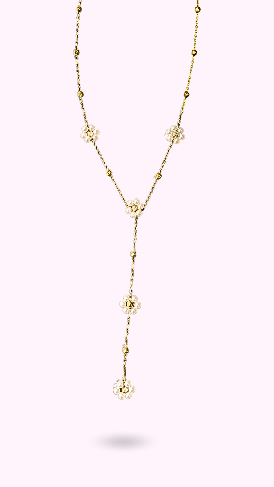 Des fleurs blanches délicates ponctuent le bas de cette longue chaîne dorée. Comme les derniers rayons d’un été qui s’éteint🌼