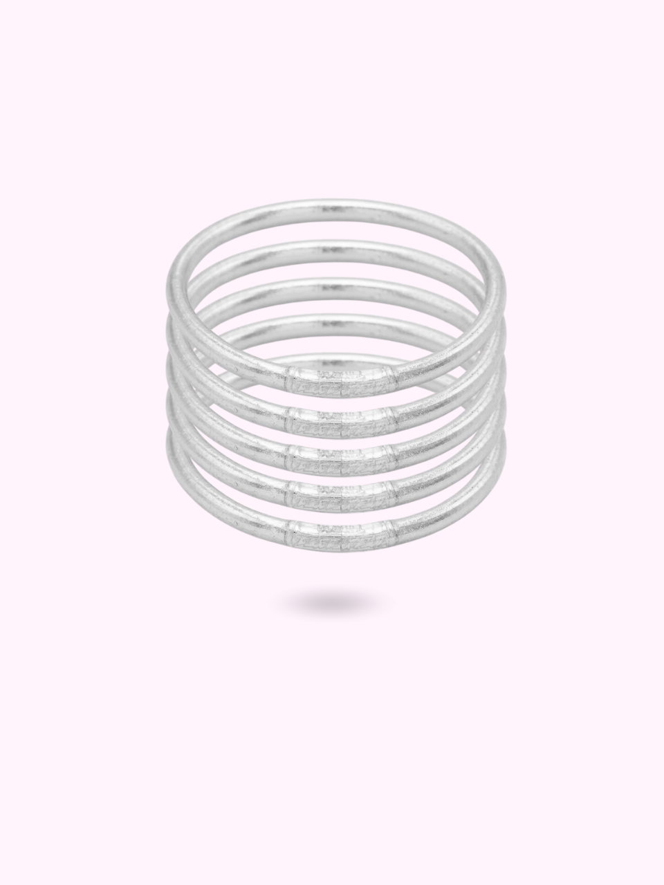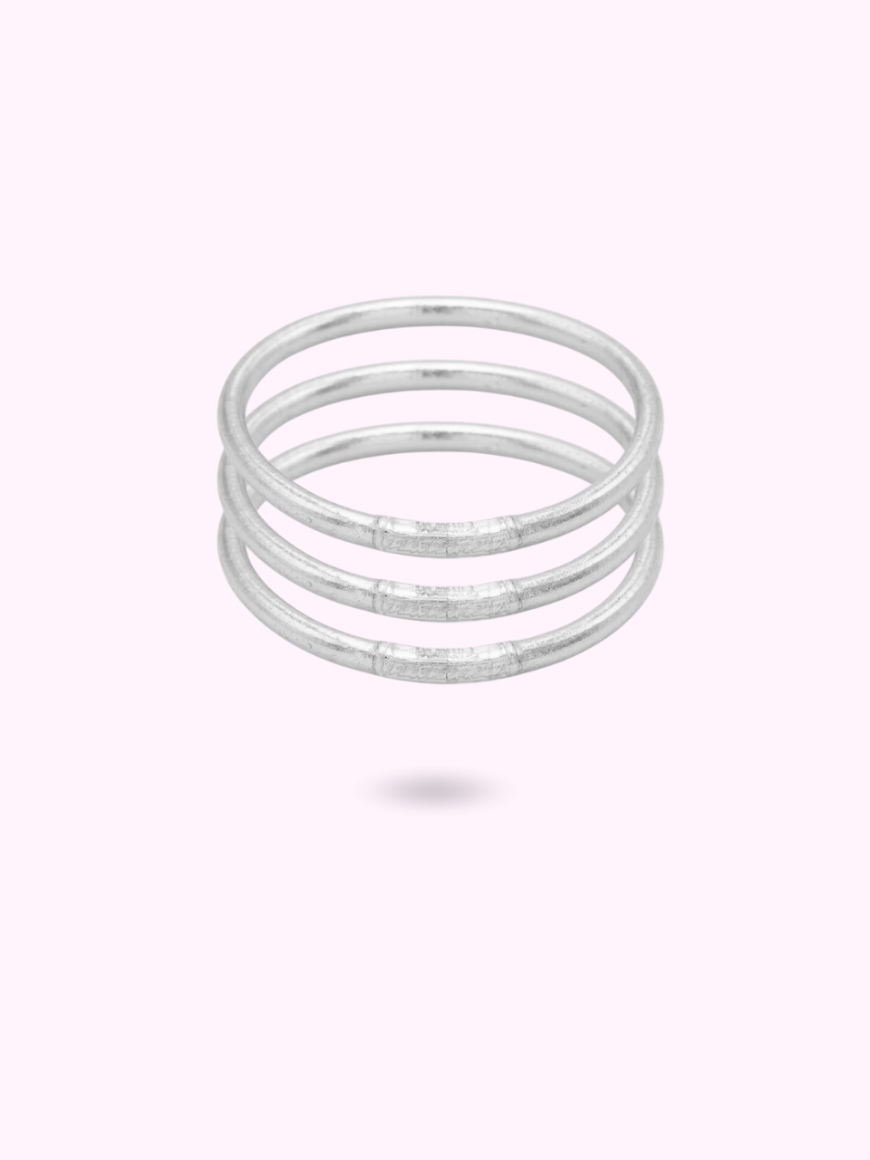Jonc souple transparent rempli de feuilles argentées décoratives, scellé avec un mantra gravé "Bonheur, Chance, Fortune et Amour" en thaïlandais